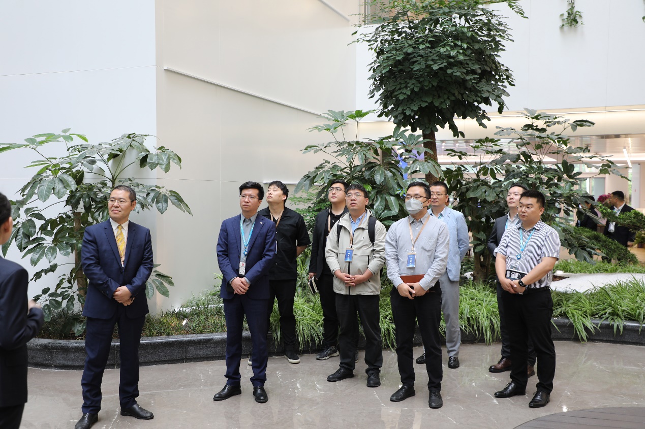 双方领导相互介绍后,由广联达行政接待经理黄杏带领,开始了数字建筑产品研发基地的观摩讲解,一行人从栈道来到三楼的智能化讲解区,顺利获得智慧大屏分析到大厦的全方位的智能化管理。